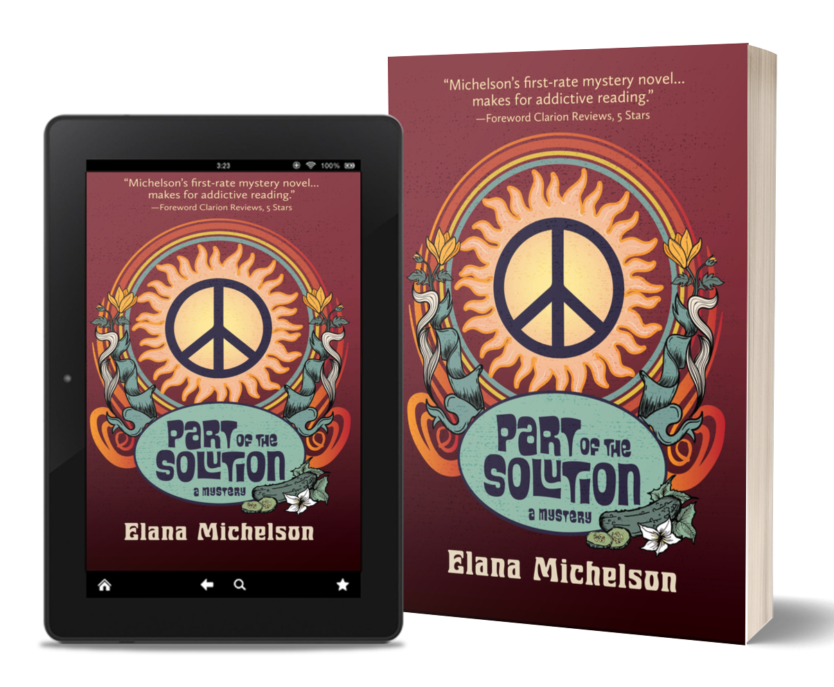Elana Michelson is a native New Yorker now living in the Hudson Valley, where she writes, reads, and gardens and obsesses with her wife, Penny, about the voracious groundhogs and volunteers with local social justice organizations. After thirty-five years as a professor, she has put down a beloved career of academic writing (and student papers) in favor of writing murder mysteries. She earned a PhD in English from Columbia University, but she gained her knowledge of the life and times of Part of the Solution by having been there.